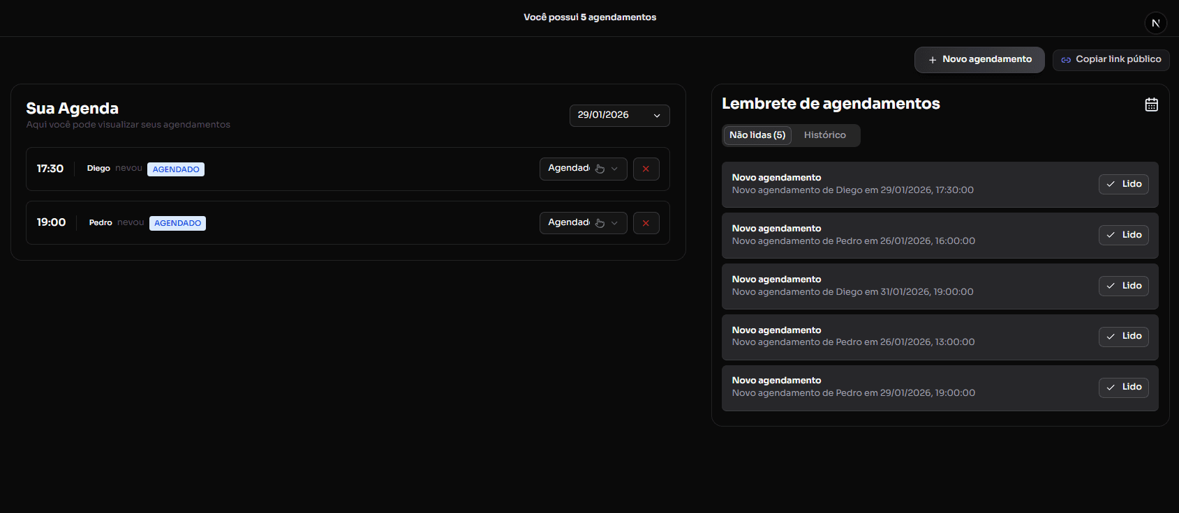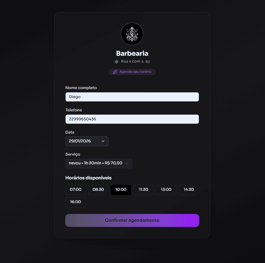 Organize seus agendamentos, reduza faltas e facilite a vida dos seus clientes com um sistema simples e profissional.